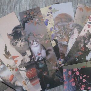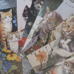 Set of 30 cardboard bookmarks, all with different cat designs,
