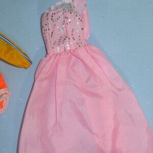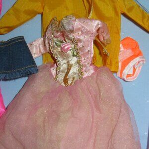 4 gowns, tops, skirts, jackets, pants. One dress (pink) is very vintage, others