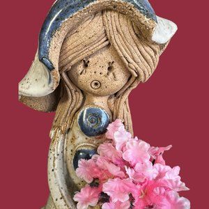 Pink flowers were substituted for original lost dry flowers, these can be switched out to your liking, also her hat has a hole in the top that can accommodate additional florals.