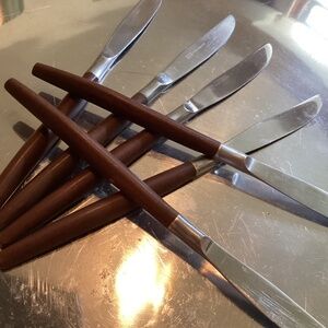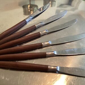 SET OF 6 VINTAGE ECKO ETERNA FORGED STAINLESS WOOD HANDLE KNIVES