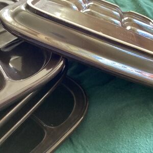 SET OF SIX VINTAGE DARK BROWN CERAMIC SQUARE SHAPED DIVIDED/FONDUE PLATES