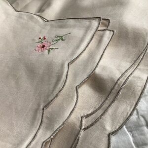 SET OF SIX VINTAGE OFF-WHITE LINEN EMBROIDERED SQUARE DINNER NAPKINS