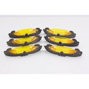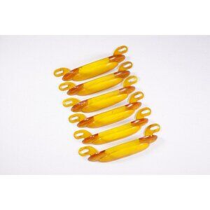SET OF 2 Fantastic Orange translucent Lucite or Bakelite Art Deco drawer pull inserts with that period typical cloud-like step pattern. These are plastic inserts for specific metal drawer pulls - the last 2 images are for an example only of what they would look like within a metal holder (not available, not included).