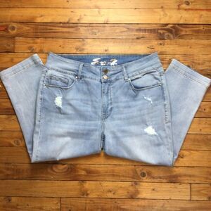 SEVEN 7 tummyless pedal pusher pants powder blue jeans crop distressed denim 14W