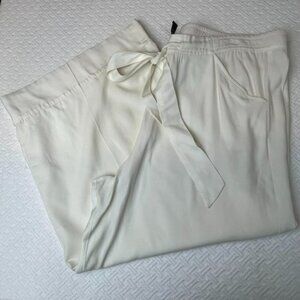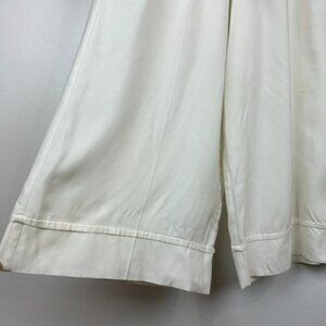 SEVENTY, White, Gartered, Viscose Blend, Wide Leg Trousers, Size 40, All white, Lightweight, Comfortable, With Belt, With Pockets, Fashion, Chic, Sophisticated, Elegant, Versatile, Summer, Beach, Vacation, Casual, Vintage, Retro