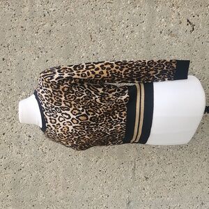 SEVENTY leopard print pull over crew neck sweater and gold glitter stripes on the hem