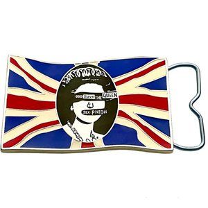 🆕 SEX PISTOLS BELT BUCKLE ~ GOD SAVE THE QUEEN ~ EMBOSSED METAL + ENAMEL