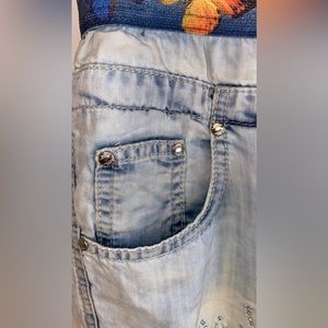 SEXY Washed Off Cropped Jeans with Rhinestone Detail