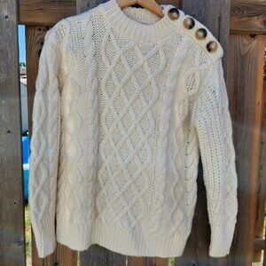 SEZANE James Merino Wool Cable Knit Jumper Sweater in Ecru Size XS
