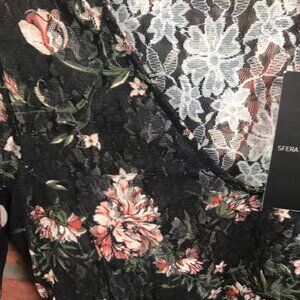 SFERA Spain NEW Lace Floral Sheer Boho Flare Bell Sleeve Peplum Stretch Top Roses Long Sleeves,