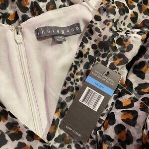 SHARAGANO Women's Black/Brown Print Assymetrical Dress - Size 20W - NWT $138. Made in China. Shell: 100% polyester. Lining: 100% polyester. Zipper in back. Wrap top with one snap.