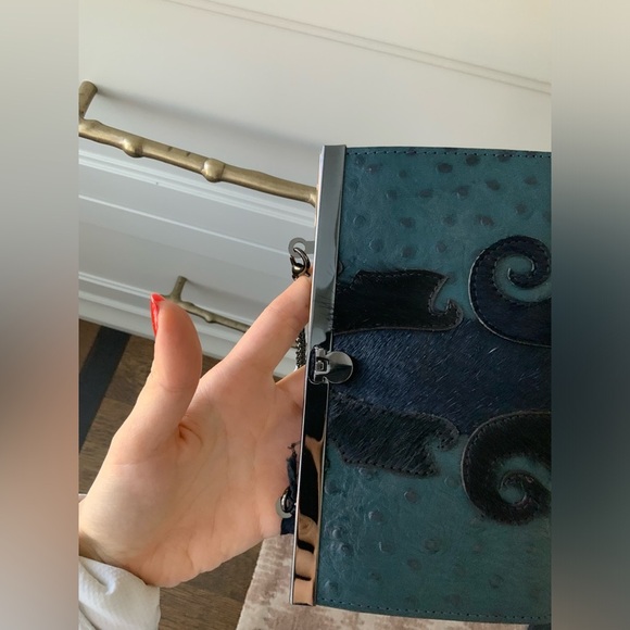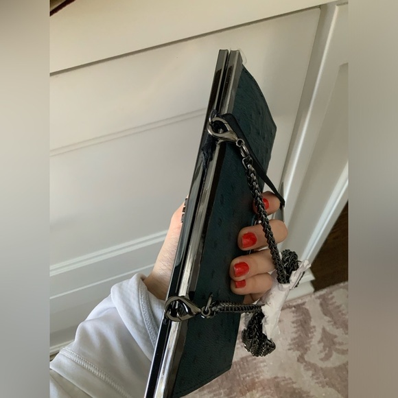 SHARIF 1827 Wallet On Chain Clutch Cross Body Purse Green Black Leather NEW