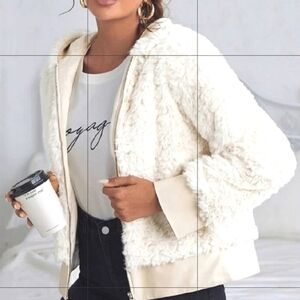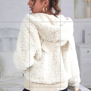 ⭐️SHEIN 3D Ear Design Hooded Zip Up Fuzzy Coat Cream Teddy Jacket Ladies Small