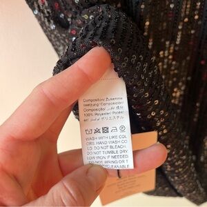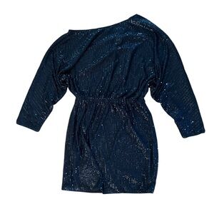 Brand new with tags! SHEIN BAE black sequin mini dress with an off-the-shoulder detail on the right side, giving it a trendy, asymmetrical silhouette. The right sleeve sits off the shoulder while the left offers more coverage with a regular sleeve. Features an elastic waist and allover black sequins that shimmer in the light — perfect for NYE, holiday parties, or a glam night out.