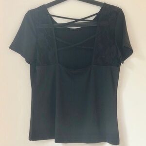 SHEIN BLACK LACE CRISSCROSS BACK TEE - M