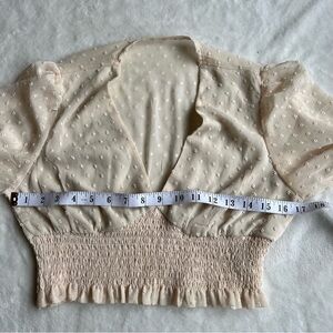 SHEIN Beige Swiss Dots Shirred Crop Blouse