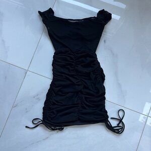 SHEIN | Black Corset Ruched Mini Dress | Small | Adjustable Tie Sides