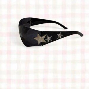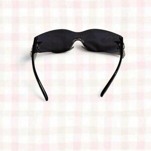 Sleek black wraparound sunglasses. Modern design. Perfect for any outfit.