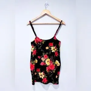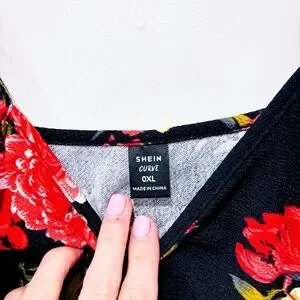 SHEIN Black floral tank top Size: 12 (XL) Condition: Like new Chest: 15" Length: 22" 95% polyester 5% spandex