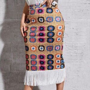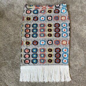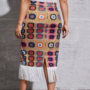SHEIN Boho Bodycon Curve Crochet look pattern with long fringe. Women's size 3XL