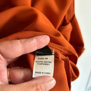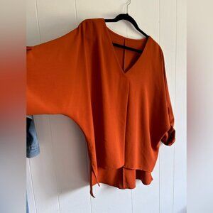 SHEIN Burnt Orange Batwing Blouse, Size Medium, Flattering and Flowy, Roll Up and Tie 3/4 Sleeves, Perfect for Fall..