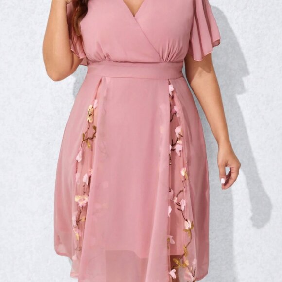 SHEIN Clasi Plus Floral Embroidery Butterfly Sleeve Dress