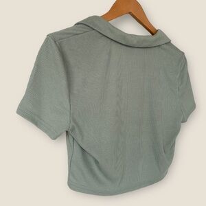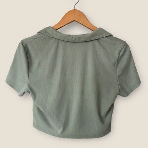 Olive collared crop tee. Material has some stretch. Excellent condition. Size L.
