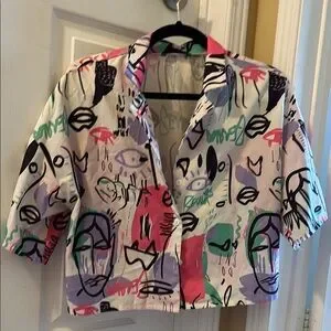 SHEIN Colorful Abstract Cropped Button Up