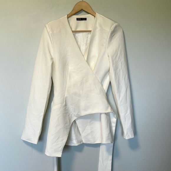 SHEIN Cream Wrap Blazer Pants Suit Set