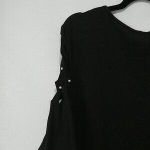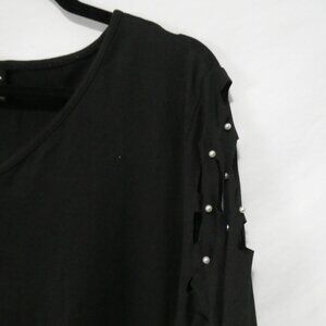 SHEIN - Curve | 2XL | Black V-Neck Top | Cut-Out and Embellished Bead Sleeves
