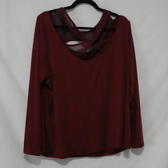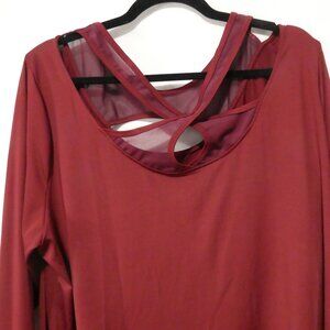 SHEIN - Curve | 2XL | Burgundy Mesh & Open Front & Back Long Sleeve Shirt
