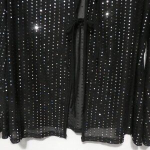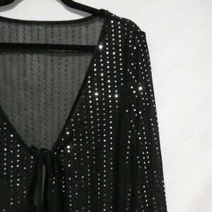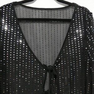 SHEIN - Curve | 2XL | Sheer Sparkling Black Sequin Cardigan | Lace Up Front