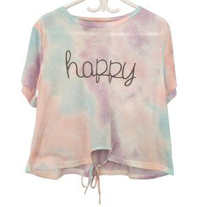 SHEIN Curve pastel-coloured tie dye crop top with "happy" graphic and cute tie up detail. Size 3XL.