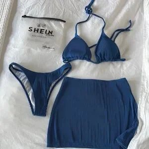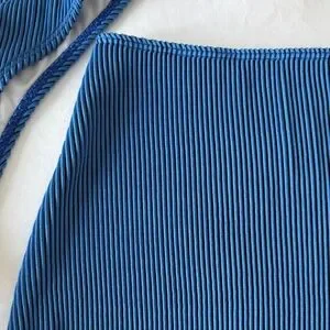 Stylish ribbed bikini set in deep blue. Perfect for beach days. Comfortable and trendy design.