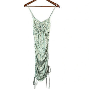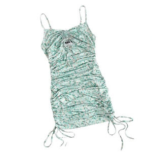 SHEIN Ditsy Floral Ruched Dress Light Teal Cutout Drawstrings Tied Spaghetti S