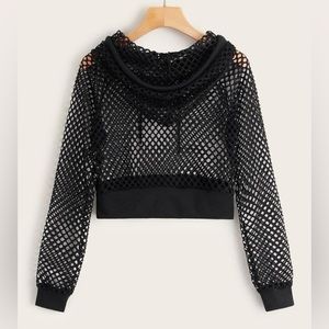 SHEIN - Fishnet Drawstring Hooded Sweatshirt