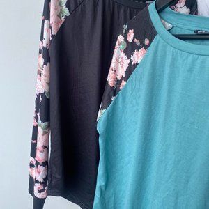 SHEIN, XL Teal body, black floral sleeves Never worn, New - Unused