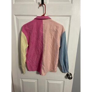 SHEIN Color Block Flap Pocket Drop Shoulder Shirt. Size 11/12Y. Pink/Blue/Yellow.