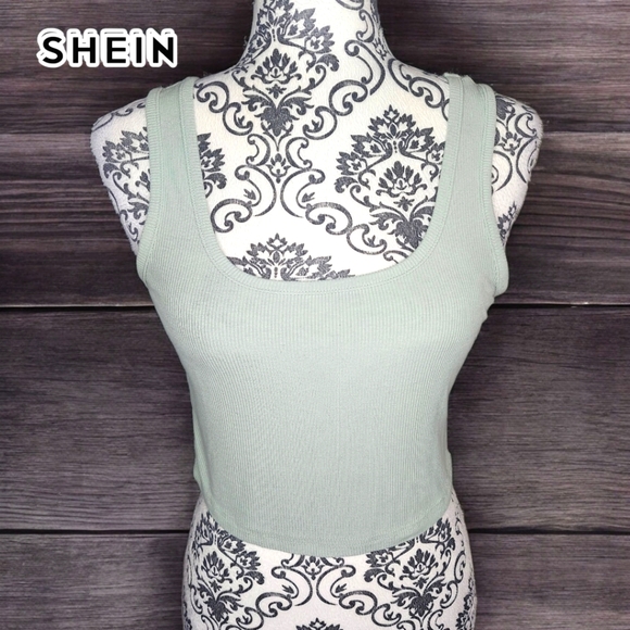 Stylish green ribbed tank top from SHEIN. Perfect for layering or wearing on its own, this top offers both comfort and style.