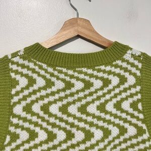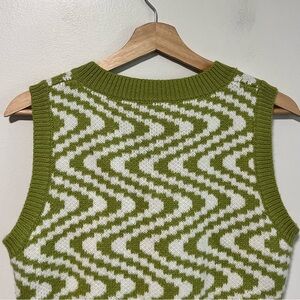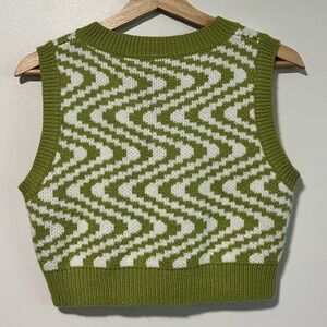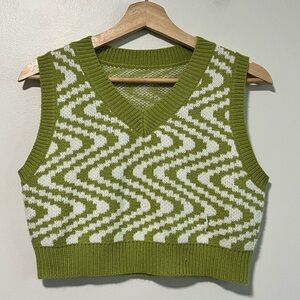 SHEIN Green & White Knit Sweater Vest Women’s Medium Geometric Cropped