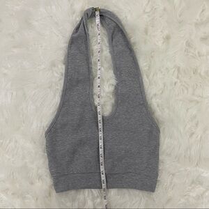 This cuter cropped halter top is made from a stretchy grey fabric and is very comfortable to wear. Size small.
