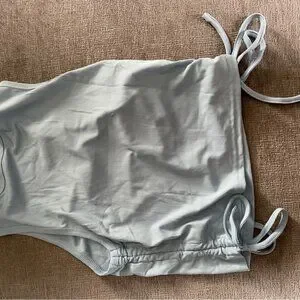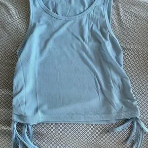 Stylish light blue tank with ribbed texture. Features side ties for a trendy look. Only worn once.