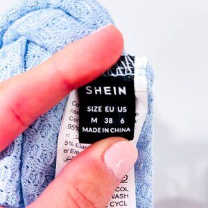 Trendy and flattering, this light blue halter top from SHEIN features a stylish twist-front design and adjustable tie-neck straps for the perfect fit. Made from a soft ribbed stretch fabric, it’s ideal for summer days or layered looks.