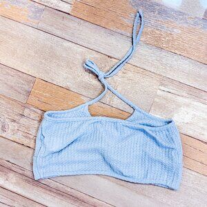 SHEIN – Light Blue Twist-Front Halter Crop Top | Ribbed Knit | Small *