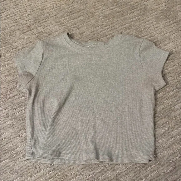 SHEIN Light Gray Ribbed Crop Tee