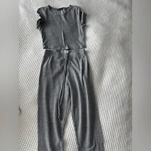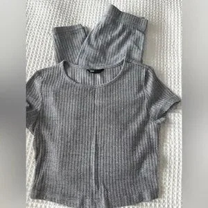 Chic light gray ribbed knit ensemble. Ideal for everyday comfort.