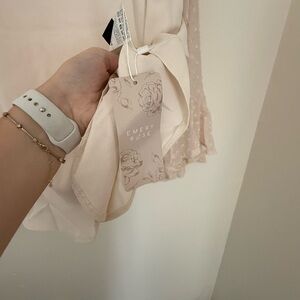 SHEIN Light Pink Blouse with Sheer Polka Dot Sleeves
