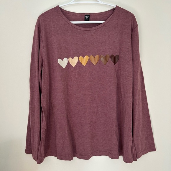 Mauve long sleeve tee. Features heart design in various shades. Casual and stylish.