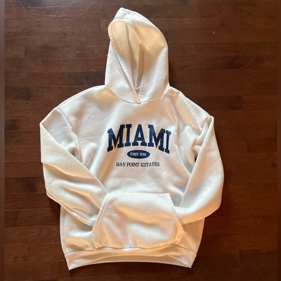 This Miami logo hoodie from SHEIN is stylish and comfy. In a medium/large size, it features a bold Miami logo, a drawstring hood, and a kangaroo pocket. Perfect for casual wear, it’s great for layering or lounging.