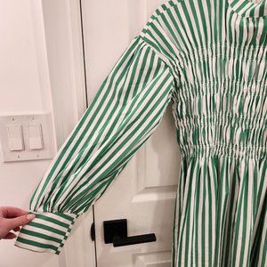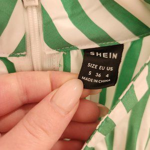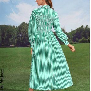 SHEIN Mulvari Vertical Striped Mock Neck Lantern Sleeve Dress Multicolor